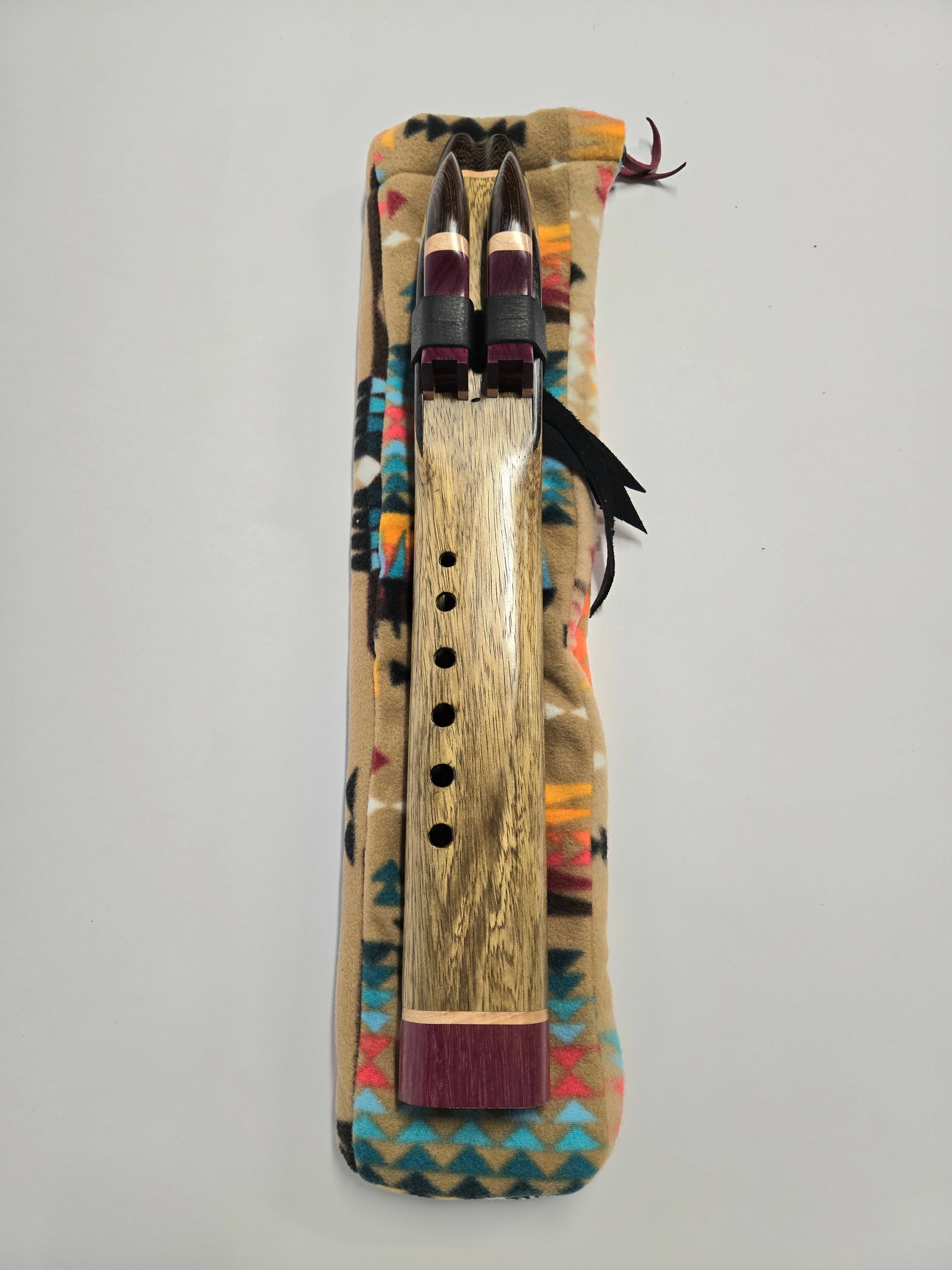 This flute is handcrafted out of Black Limba (body) Wenge, Purpleheart and Soft Maple. This flute just screams beauty with the combo of woods used. And the voice is clear vibrant and full of energy. A great flute for a drum circle.