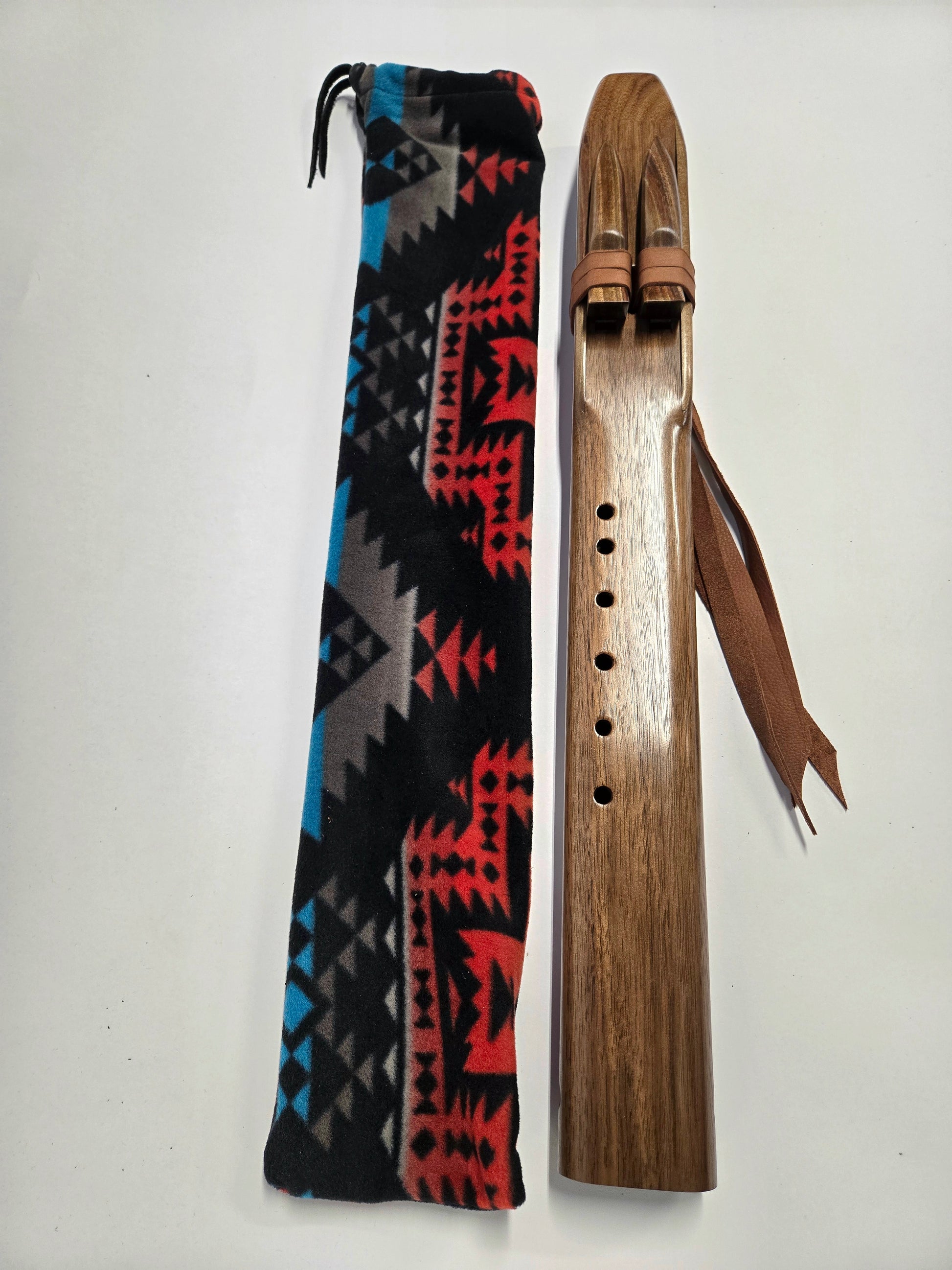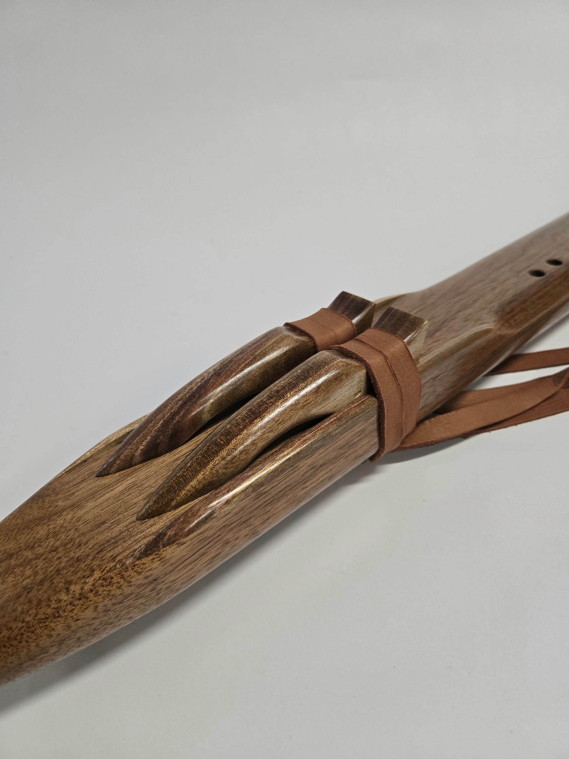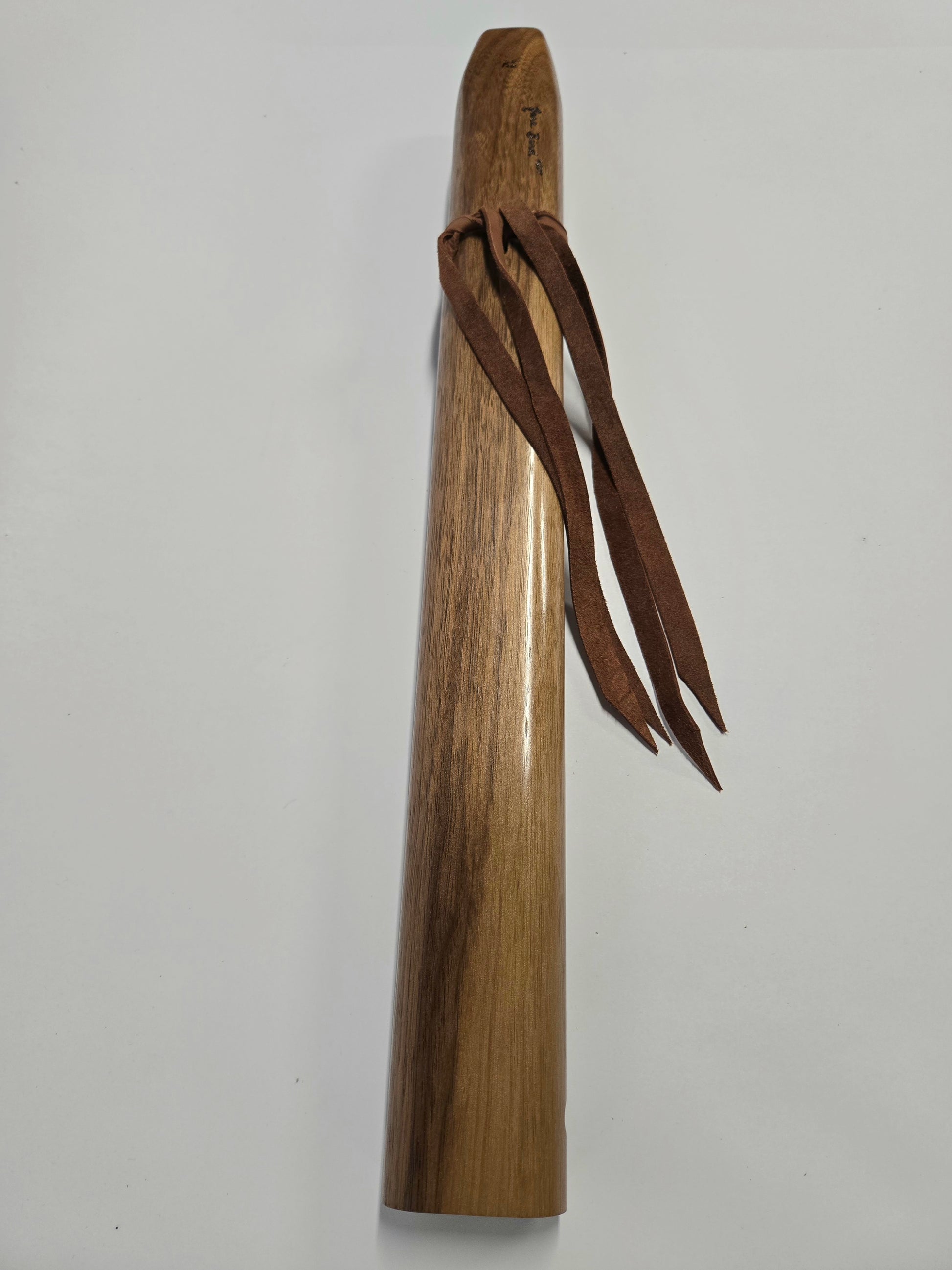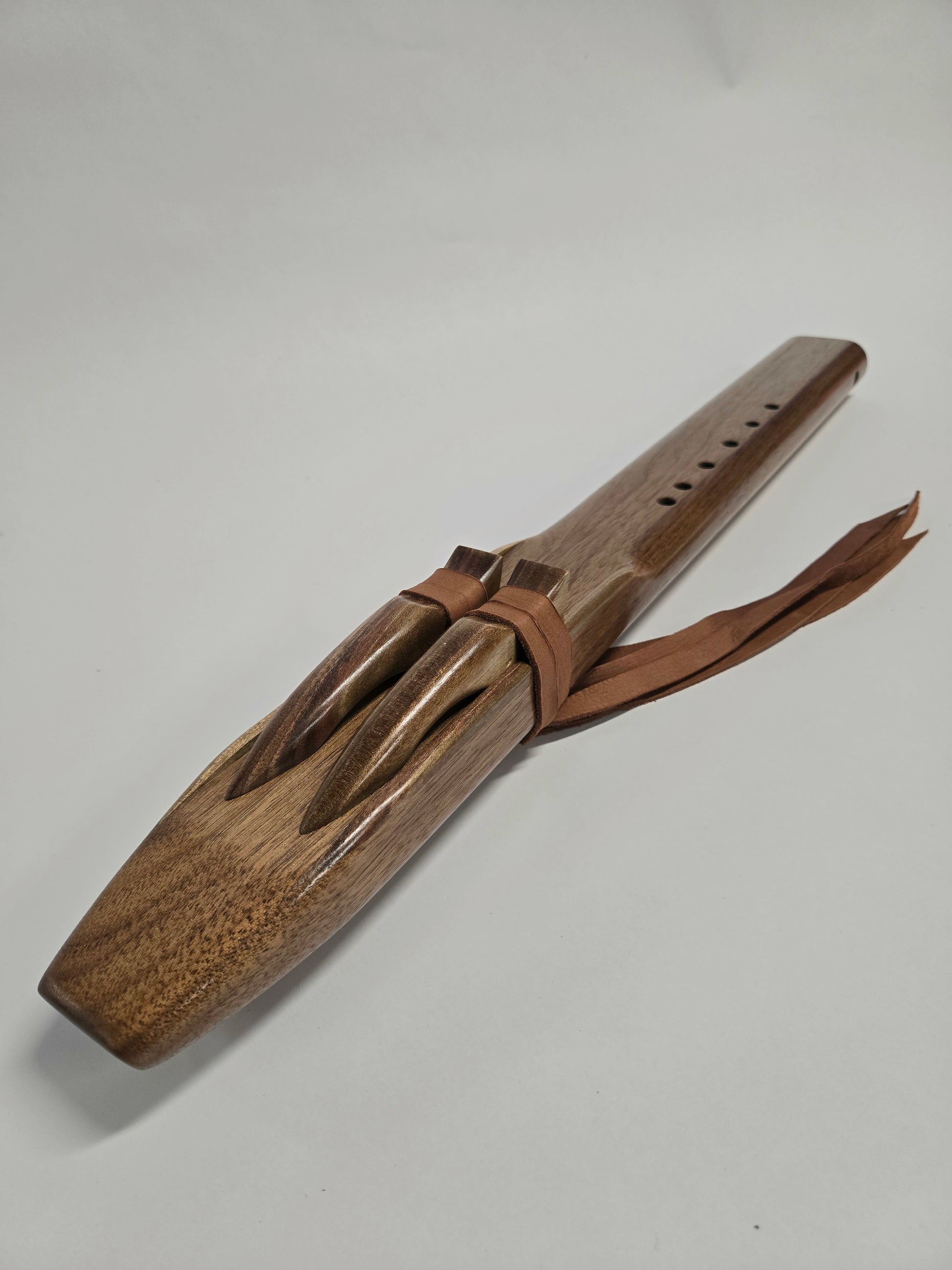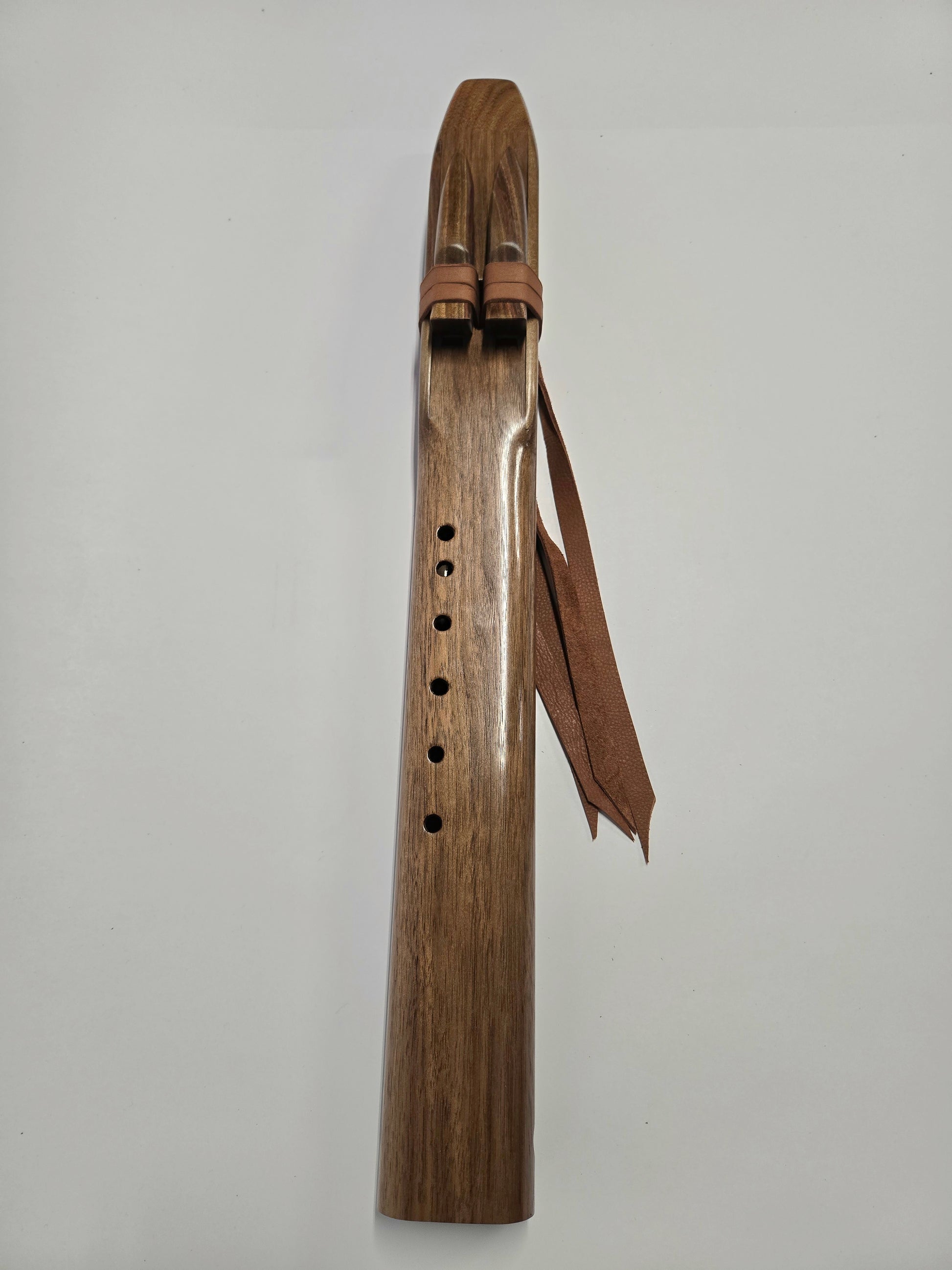 Here we have a beautiful drone flute featured with black walnut on the entire flute! Black Walnut never disappoints with an amazing look and excellent tone. This flute in particular I chose to shape the mouthpiece different than our most common design. With the mouthpiece angled and Soft rounded edges, its very comfortable to hold and play.