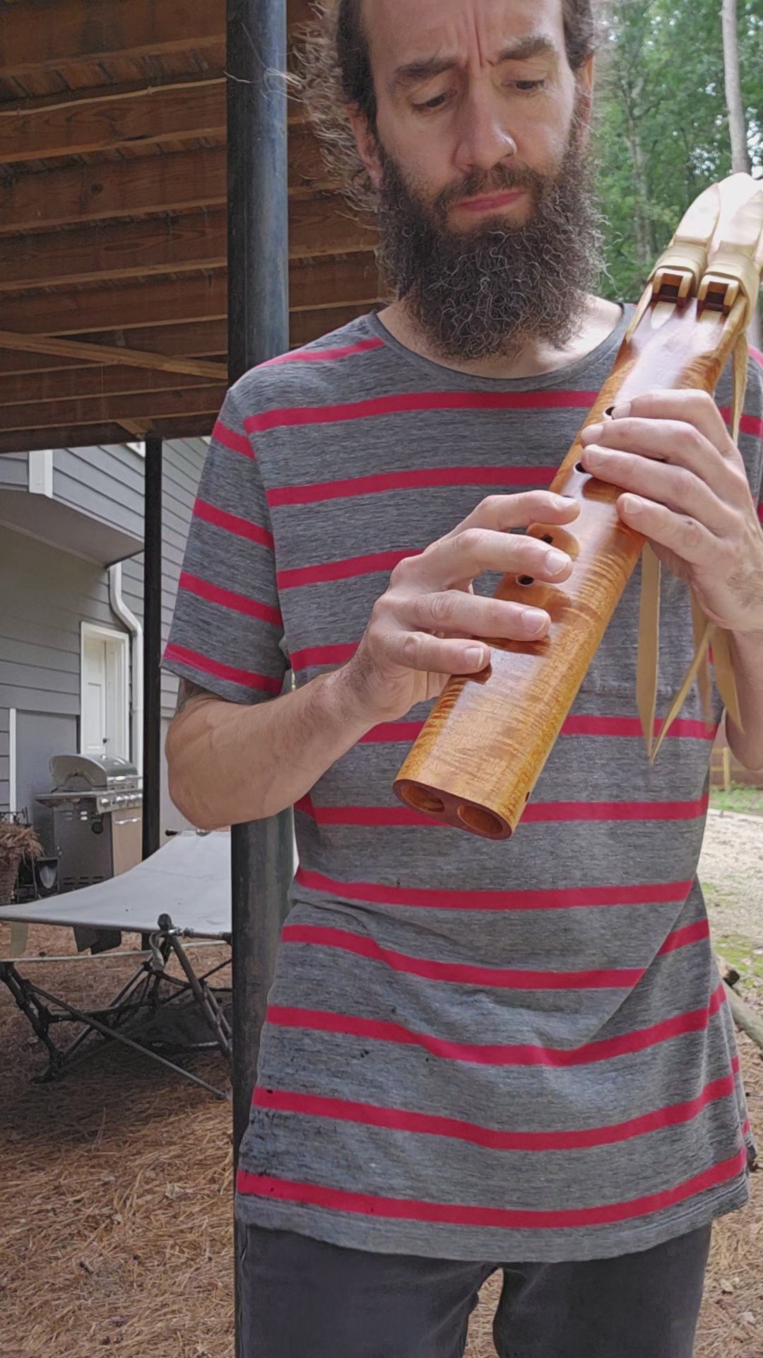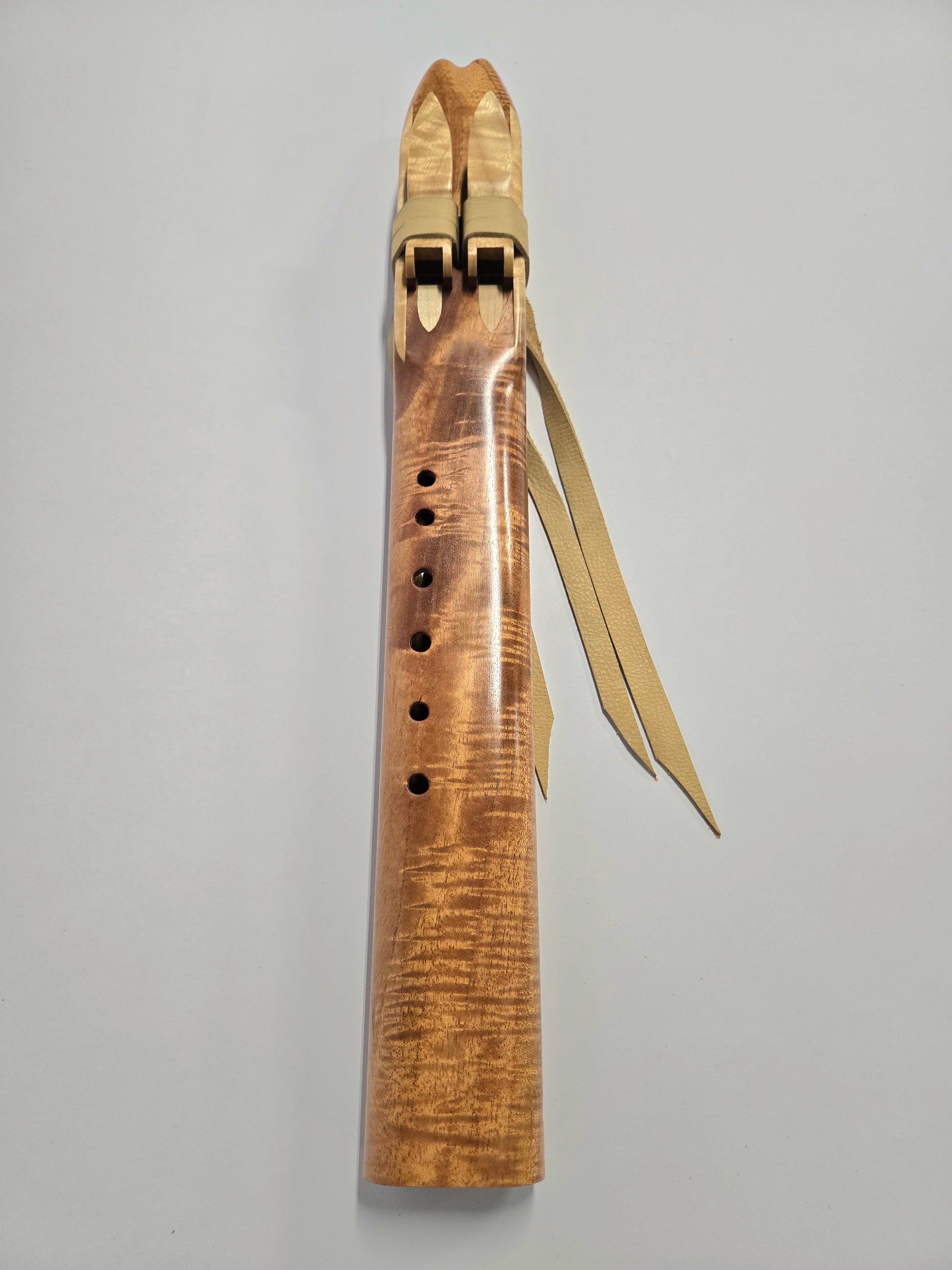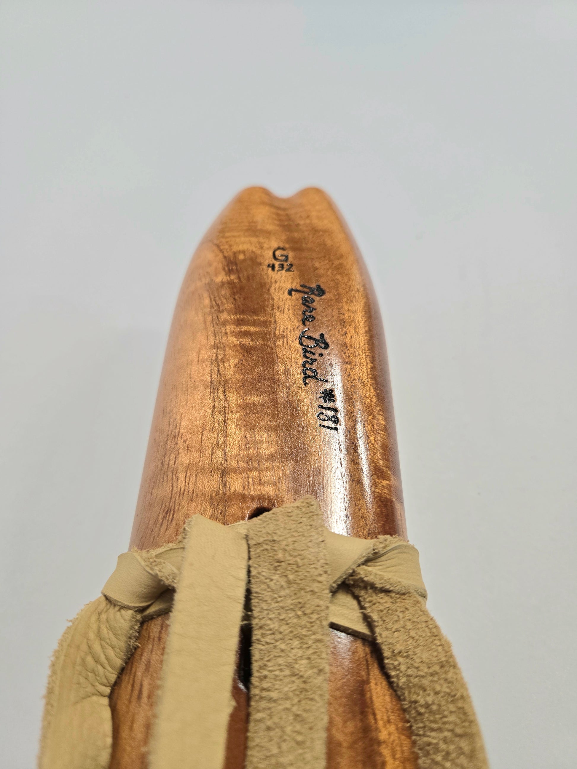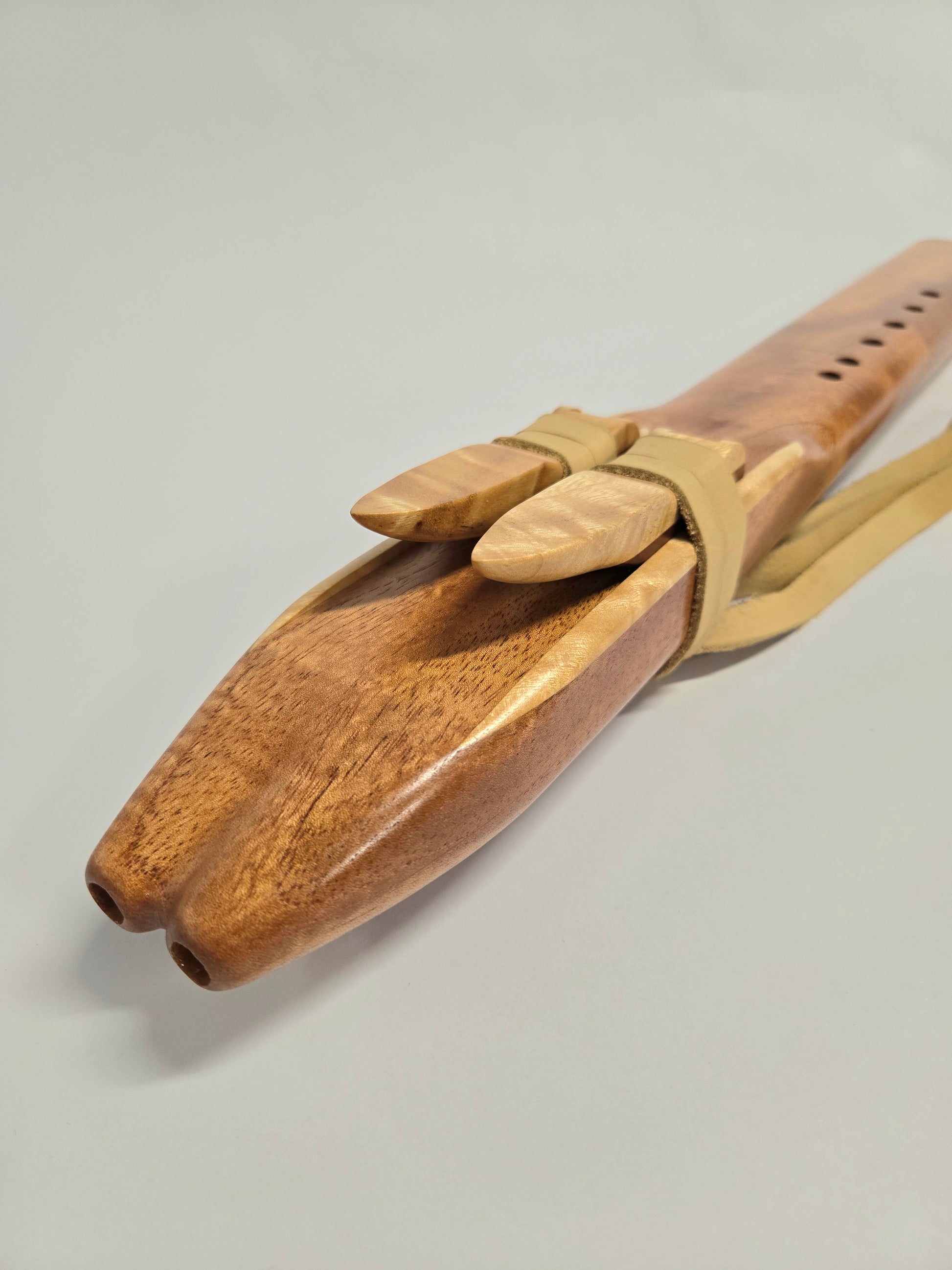 This flute is handcrafted out of Figured Spanish Cedar (body) aromatic cedar and Figured Camphor. What an amazing pairing of figured woods this flute has. And is equipped with a voice that is beautiful and mesmerizing to the player and listener.