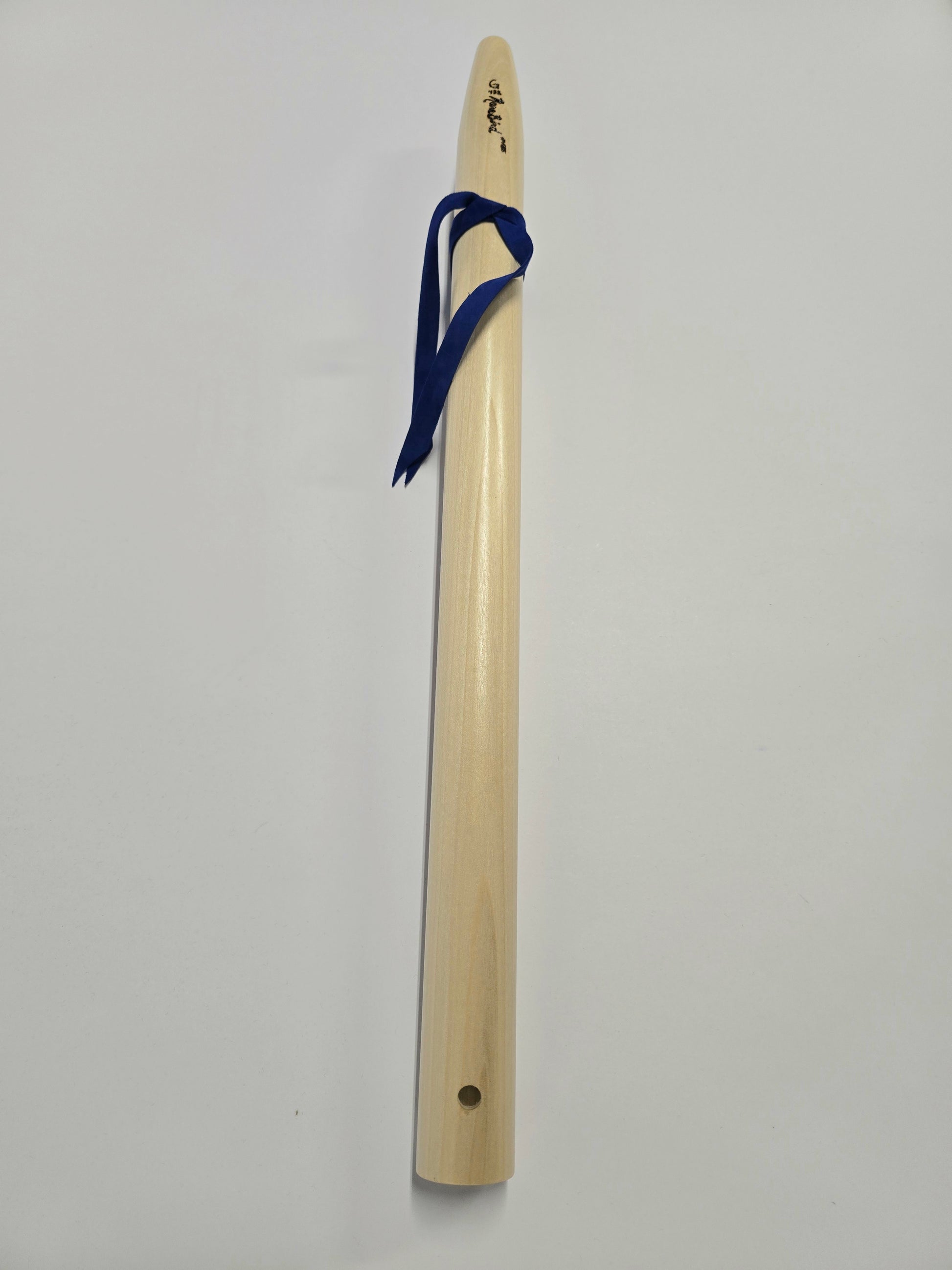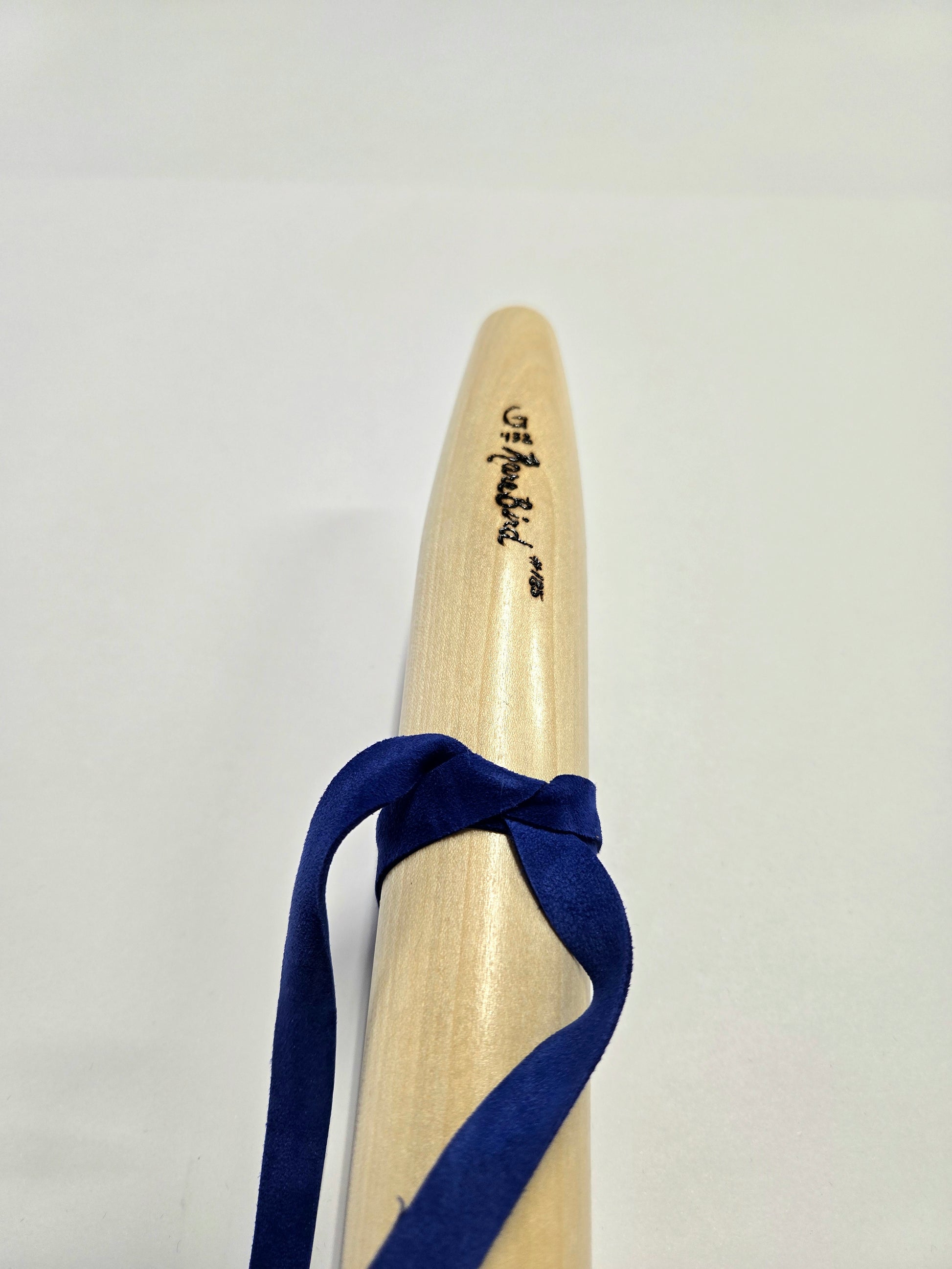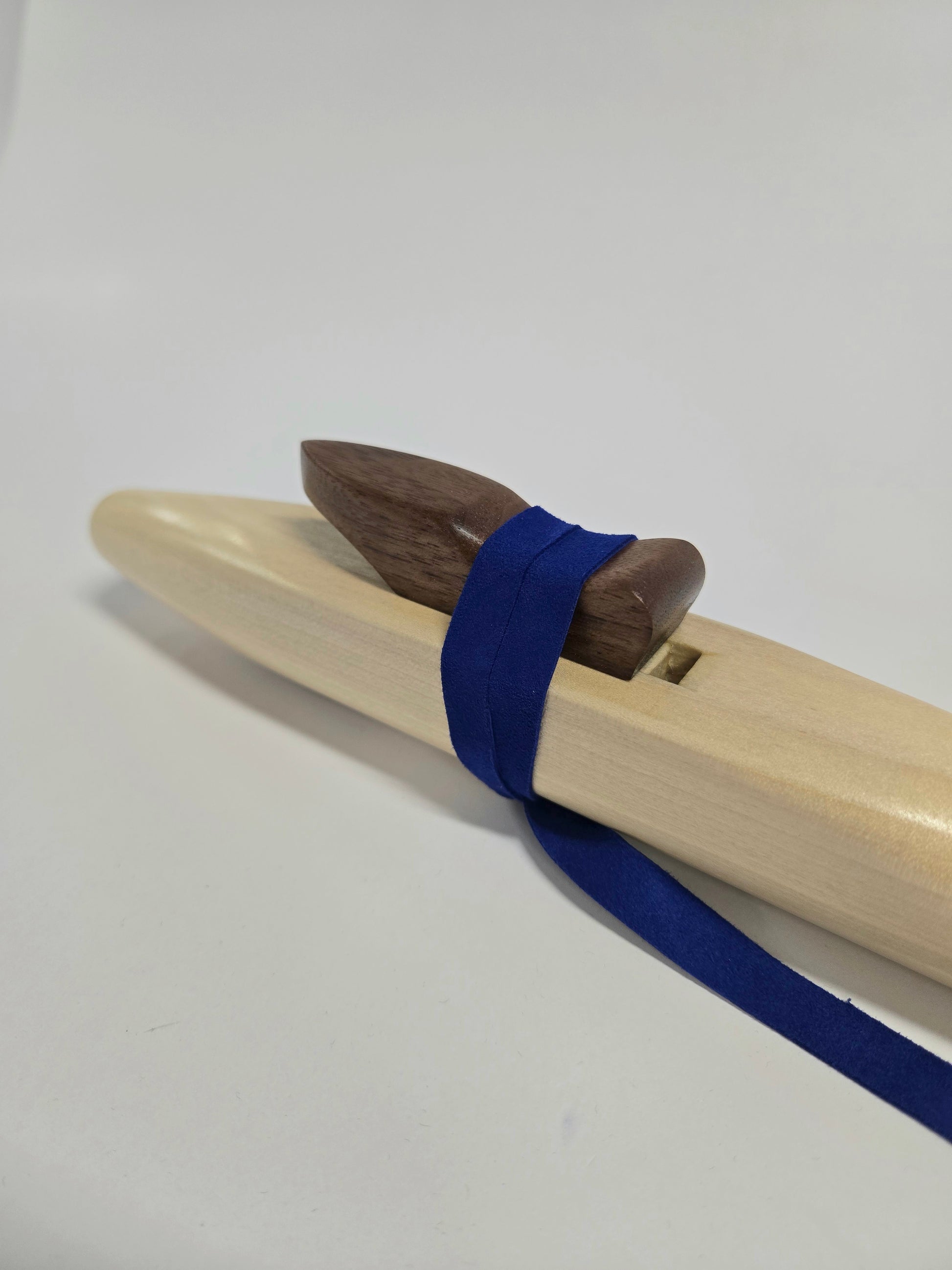 This beautiful flute is made out of Poplar and Black Walnut. This flute sings! The Poplar body of the flute really delivers an authentic sound, which makes it an excellent tonal wood. Paired with the Black Walnut bird, not only does it sound good, it has a simple elegant look.