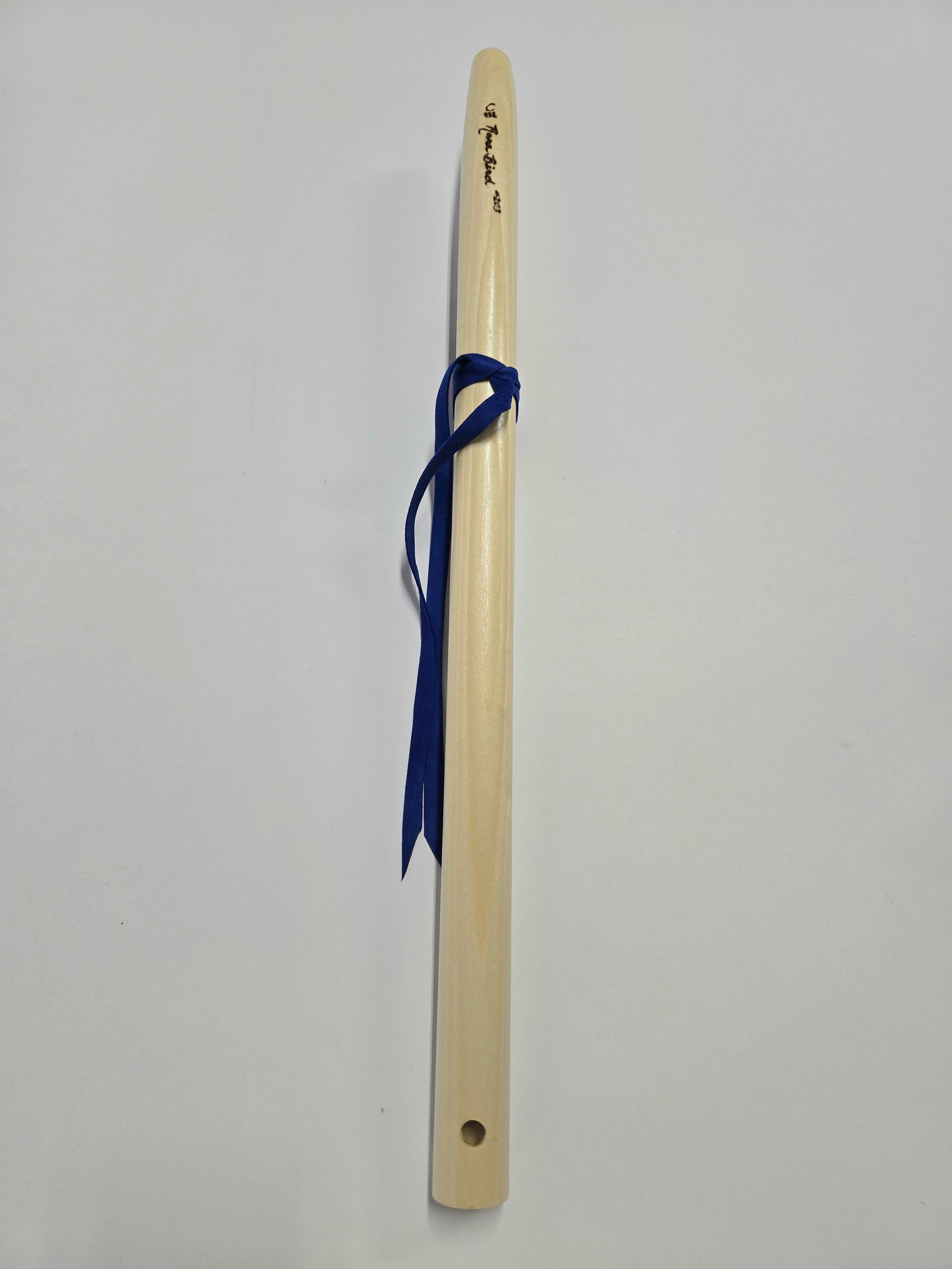 This flute is 20 3/4 inches long, 1 3/8 inches at its widest, and 10 1/8 from mouthpiece to top hole.